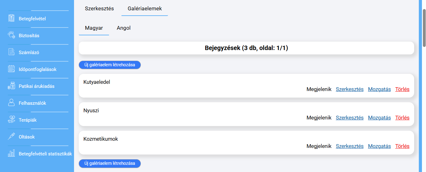 • Orvosok, adminisztrátorok kezelése a rendszerben